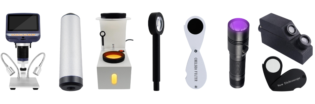 Mes outils de gemmologieMicroscope numérique, spectromètre, polariscope, conoscope, filtre Chelsea, lampe UV, refractomètre, dichroscope