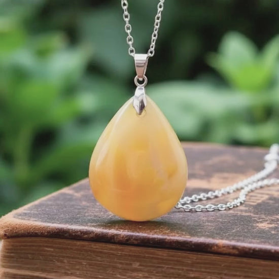 Ce pendentif en Cornaline, taillé en forme de goutte, séduit par ses nuances chaleureuses d’orange et de jaune.